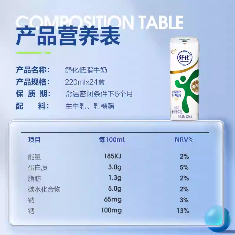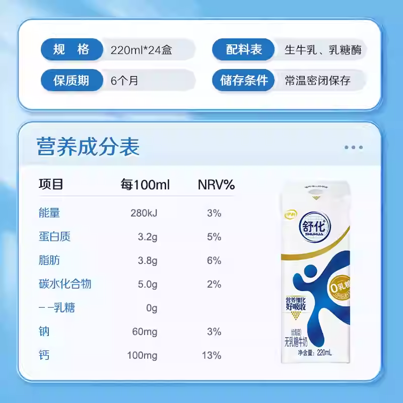 伊利舒化全脂/高钙/低脂/脱脂无乳糖牛奶