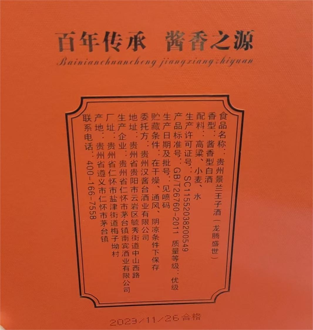 纯粮白酒,酱香典范,酒花细腻,挂杯持久。
